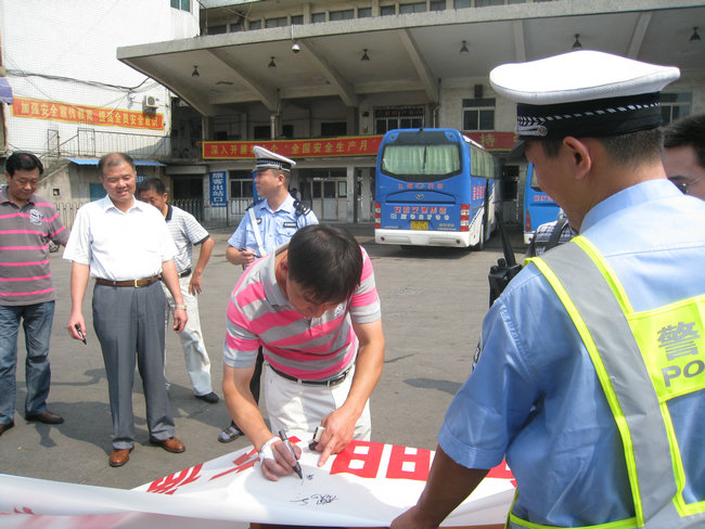 9月4日,市客運分公司與交警支隊二大隊在安慶汽車(chē)站停車(chē)場(chǎng)內開(kāi)展“文明交通我承諾,文明交通我參與”駕駛員簽名活動(dòng);顒(dòng)首先由交警支隊二大隊二中隊楊指導員宣傳5種易發(fā)生道路交通事故的不良及違法駕駛行為,楊指要求駕駛員駕駛車(chē)輛做到:不超員、不超速、不疲勞駕駛、不酒后駕駛、不無(wú)證駕駛,做文明禮讓安全行車(chē)的文明駕駛員;隨后進(jìn)行了駕駛員簽名,市客運分公司110名未當班的駕駛員參加了本次簽名活動(dòng)。