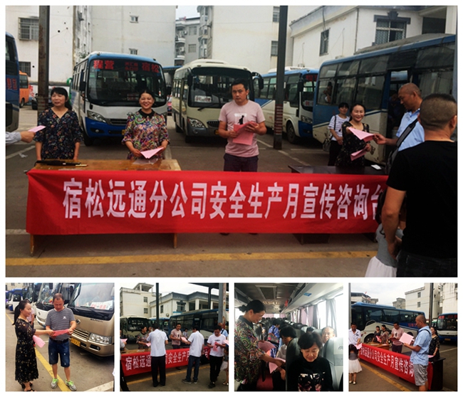 2019年6月16日是全國第十八個(gè)安全生產(chǎn)月宣傳咨詢(xún)日。分公司根據安全生產(chǎn)月活動(dòng)方案的計劃安排,在宿松客運東站如期組織開(kāi)展了安全生產(chǎn)月宣傳咨詢(xún)日活動(dòng),分公司領(lǐng)導班子成員、安全管理人員參加了本次活動(dòng)。