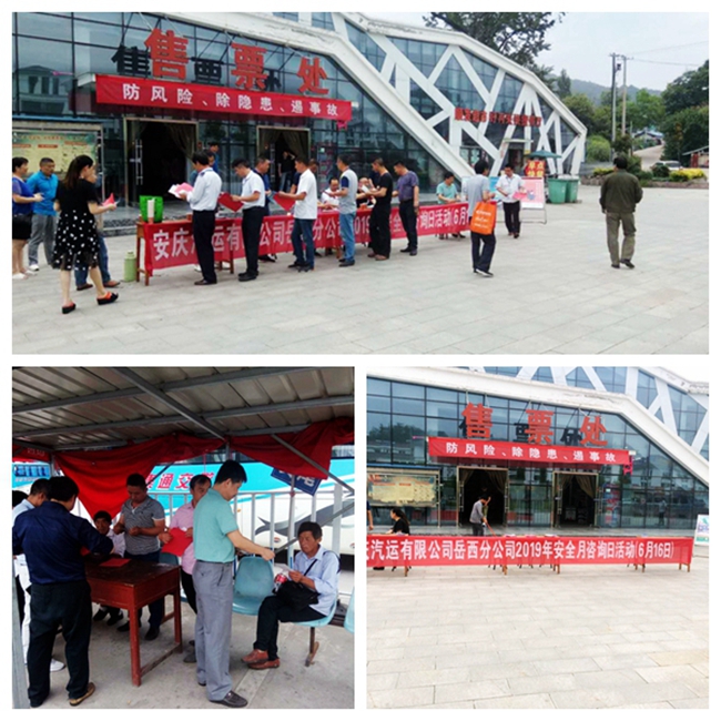 2019年6月16日是全國第十八個(gè)“安全生產(chǎn)月”咨詢(xún)日,安慶公路客運中心站在站前廣場(chǎng)開(kāi)展了大型安全咨詢(xún)日活動(dòng)。