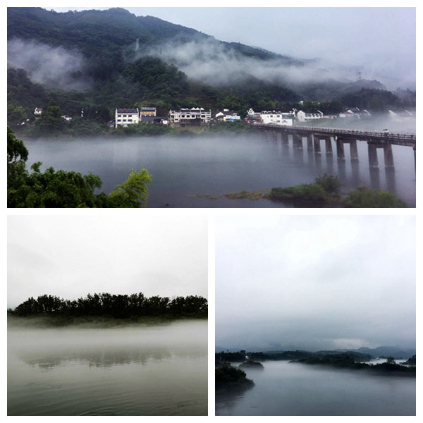 真是百聞不如一見(jiàn)。剛到景區就被這兒的景色深深地迷住。天空下著(zhù)蒙蒙細雨,正好一睹桃花潭的雨景。當真是人間仙境,水天一色,煙雨朦朧。桃潭煙波使人陶醉,移步皆成景,一步一景。潭岸怪石聳立,古樹(shù)青藤紛披,飛閣危樓隱約其中,猶如蓬萊仙境。峭巖上古藤綴拂,煙霧繚繞,山光水色,尤顯旖旎。駕一葉扁舟泛游其上,一篙新綠,微波漣漪,足見(jiàn)千尺潭光九里煙。群山在云霧的籠罩下,若隱若現,撲朔迷離,好似一位害羞的姑娘掩面不語(yǔ)。一陣微風(fēng)輕輕吹過(guò),煙霧盡散,風(fēng)光乍現,又是一派碧水匯流、蒼巒疊翠的自然風(fēng)光,好一幅山水水墨畫(huà)。