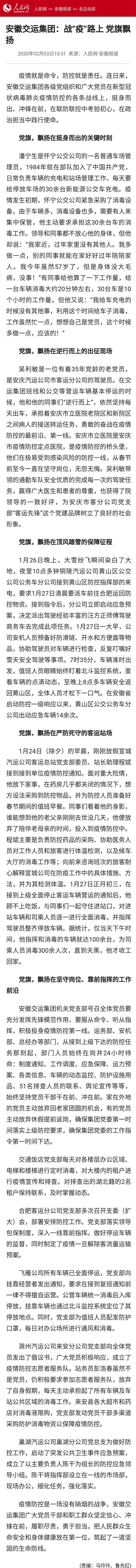 人民網(wǎng):安徽交運集團:戰“疫”路上 黨旗飄揚