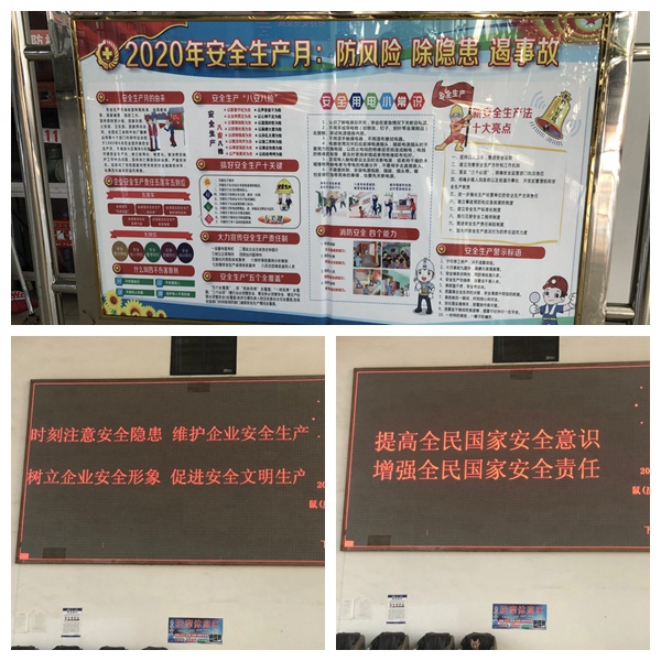 分公司一是利用候車(chē)廳電子顯示屏滾動(dòng)播放平安建設、掃黑除惡宣傳口號;二是結合晨會(huì )、安全例會(huì )向員工普及各種安全法律知識;三是組織分公司志愿者向旅客發(fā)放宣傳資料,講解宣傳安全防范知識;四是結合即將到來(lái)的全國安全生產(chǎn)月活動(dòng)開(kāi)設安全生產(chǎn)宣傳專(zhuān)欄。