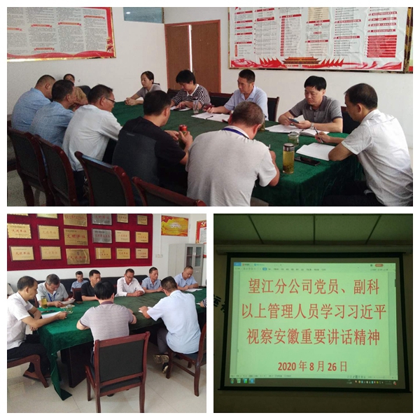 (望江分公司訊 王海峰):8月26日下午,望江分公司組織黨員及副科以上管理人員集體學(xué)習《習近平視察安徽和在扎實(shí)推進(jìn)長(cháng)三角一體化發(fā)展座談會(huì )上的重要講話(huà)精神》。集體學(xué)習活動(dòng)由分公司支部書(shū)記張佛應主持。分公司經(jīng)理何德松領(lǐng)學(xué)了講話(huà)精神。