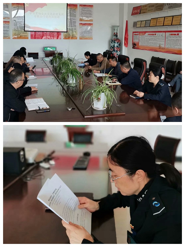 為統一意志、凝聚共識,11月4日,樅陽(yáng)分公司黨總支組織黨政班子、各支部支委、行政黨支部全體黨員、各科室負責人,在黨員活動(dòng)室集中學(xué)習交控集團公司第一次黨代會(huì )精神。學(xué)習活動(dòng)由總支余斌書(shū)記主持。