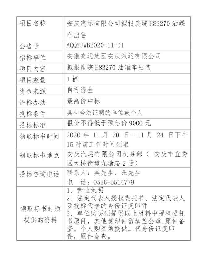 安慶汽運公司擬報廢皖H83270油罐車(chē)售公告