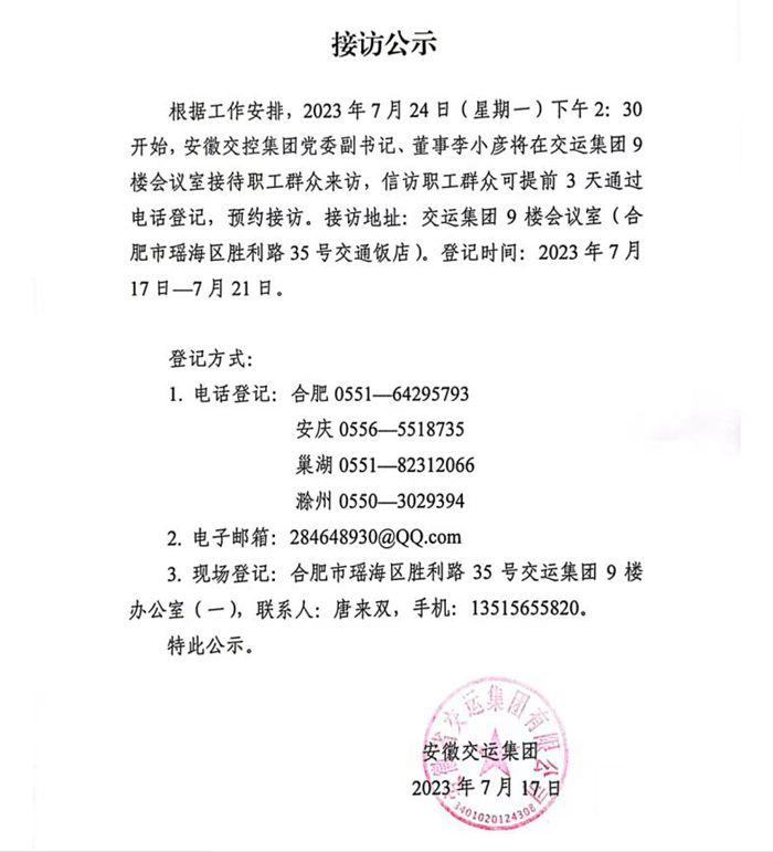 交控領(lǐng)導接訪(fǎng)公告