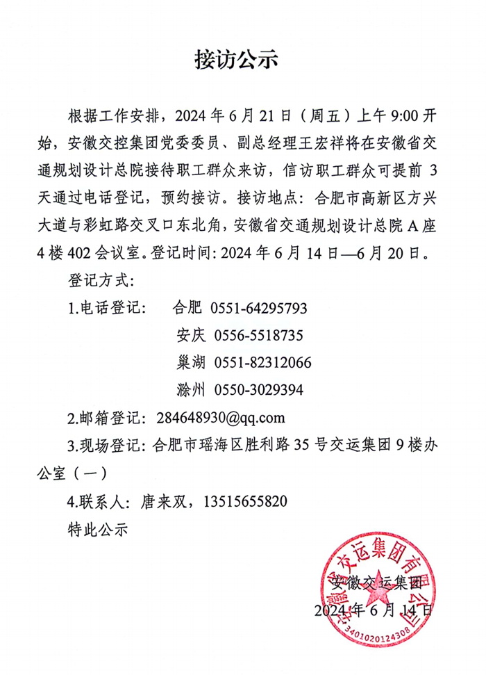 交控集團領(lǐng)導接訪(fǎng)公示